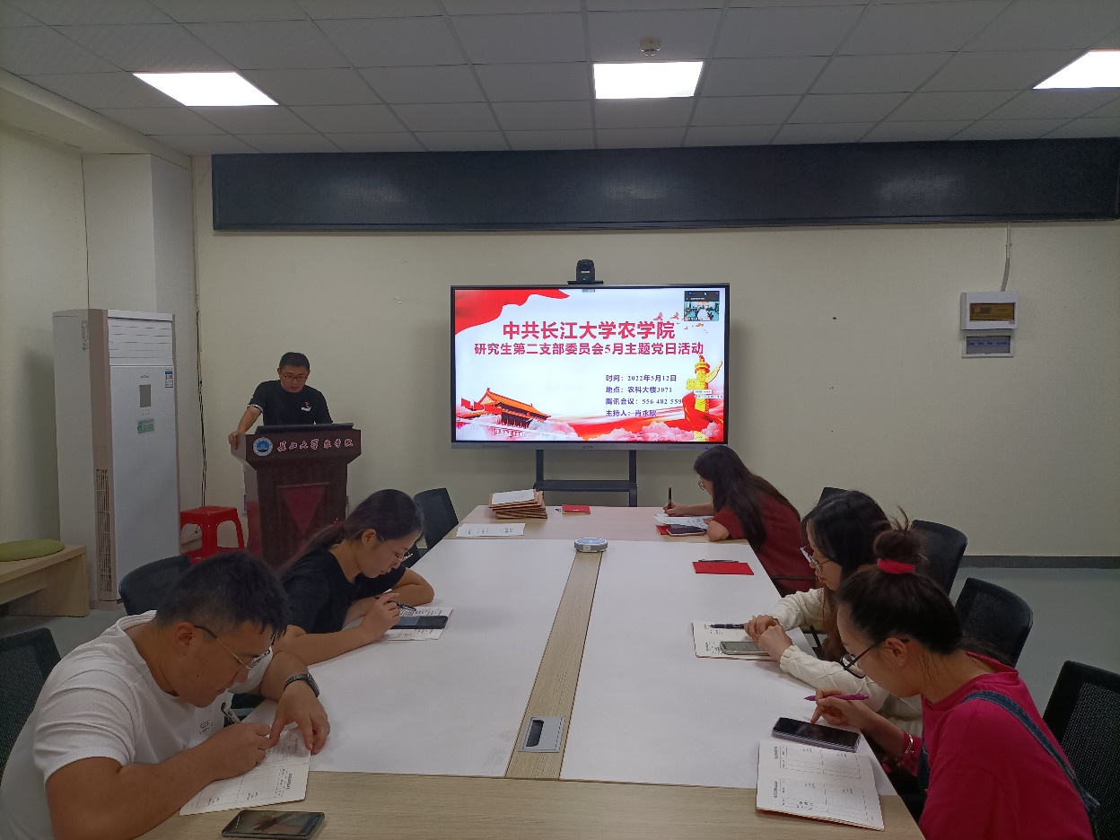 5月12日晚上7点30分,我院研究生第二党支部在农科大楼3071开展了5月份主题党日活动,活动结合腾讯会议的方式开展。全体在校党员和校外联培党员参与了此次活动,会议由支部副书记肖永欣主持。