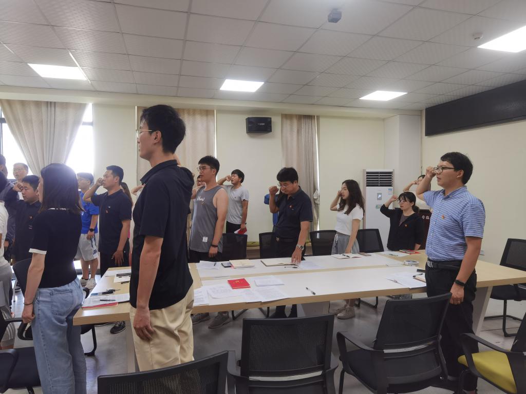 在主题党日活动中,党委书记姜清奎同志带领全体党员重温入党誓词。紧接着,胡丰琴同志对本月党费交纳情况进行了说明。随后,全体党员集体诵读党章第六章《党的干部》,学习党的创新理论和习近平总书记给南京大学留学归国青年学者回信的学习视频。会上王壮志、侯韦同志先后领学了《中共2026世界杯官网委员会关于开展党员干部下基层察民情解民忧暖民心实践活动的实施方案》。接下来,李浩轩、陈萱同志带领学习《教育部关于建立健全高校师德建设长效机制的意见》;尹良武、陈宇航同志带领学习《2026世界杯官网关于领导干部插手干预重大事项记录报告的暂行规定》。