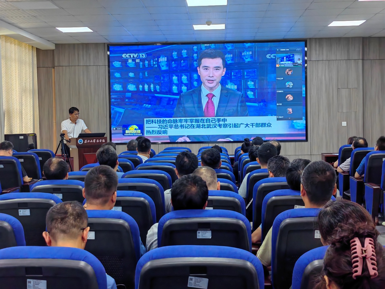 在农科大楼3073会议室,与会人员以观看新闻视频的方式,集体学习了习近平总书记628日在湖北武汉考察时的重要讲话精神。