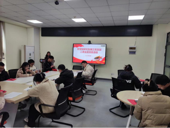 (通讯员 邹宇傲)2月23日上午8:00,我院研究生第三党支部在农科大楼3071开展2022年党支部组织生活会暨2月主题党日活动,结合腾讯会议线上线下同时开展,全体在校党员和校外联培党员参与了此次活动,本次活动由支部党员杨彩仙同志主持。
