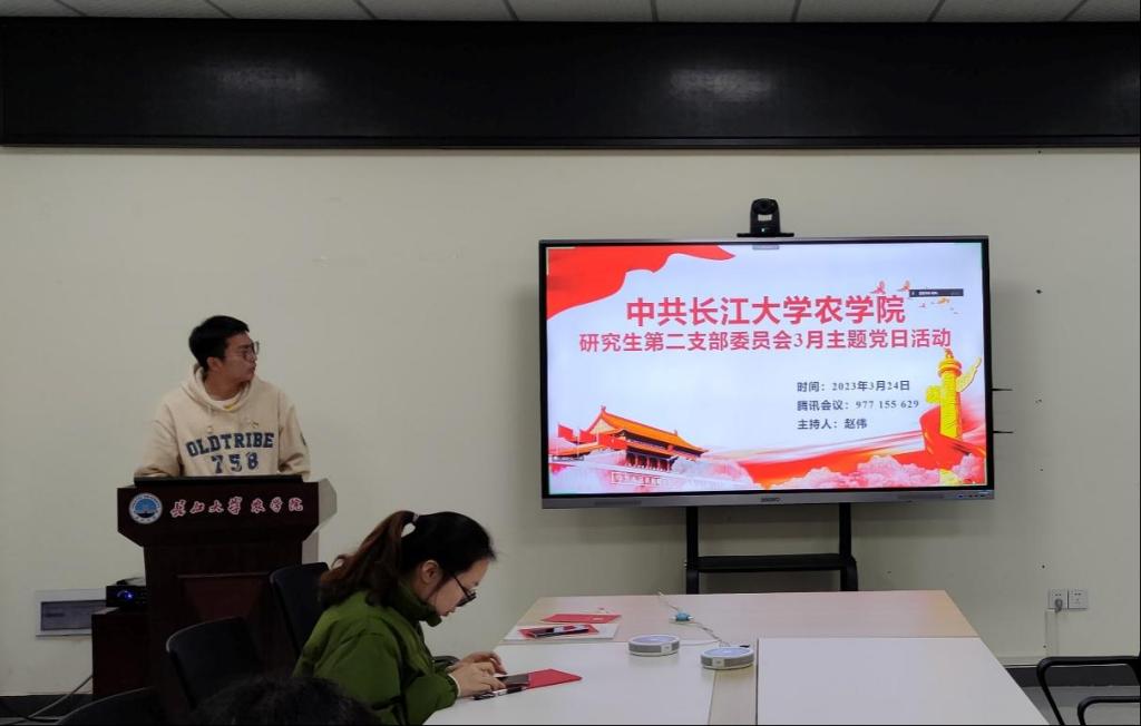 (通讯员 曹佩娜 宋梦圆)3月24日下午3点,我院研究生第二党支部在农科大楼3071开展三月份主题党日活动。全体在校党员和校外联培党员通过线上和线下的形式共同参与本次活动,活动由赵伟同志主持。