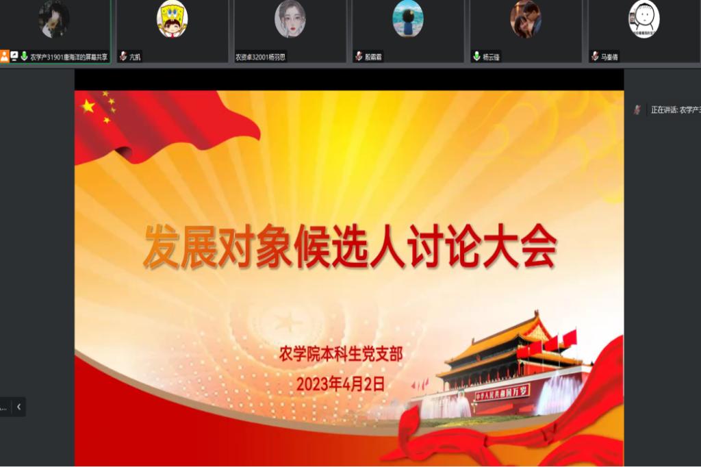 (通讯员 亢凯)为进一步加强世界杯官网党员队伍建设,切实提高发展党员质量,4月2日下午3:00,我院本科生学生党支部在腾讯会议召开2023年上半年发展对象候选人讨论大会。活动由本科生学生党支部副书记唐海洋同志主持,全体本科生党员参与讨论。世界杯官网本科生学生党支部书记杨云锋同志出席本次会议。