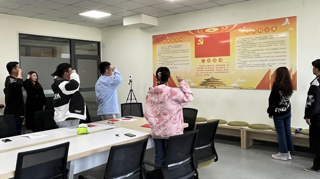 会上,刘可为同志带领全体党员重温入党誓词。全体党员交纳本月党费,并集体诵读党章。党员韩金玲、柴梦莹、张莹莹、侯留迪等同志带领所有党员开展理论学习。曹世攀同志围绕总体国家安全观主题讲授微党课。作为一名学生党员,如何培养调查研究的能力?党员同志们纷纷现场展开研讨。