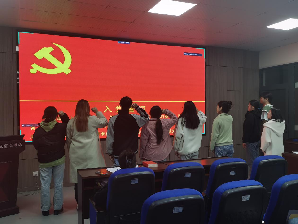会议上,向风云等9名发展对象依次发言,从思想、学习、工作、生活、入党动机等多个方面向党组织汇报自身情况。与会党员对这9名发展对象的表现做出了客观评价。发言完毕,正式党员以无记名投票的方式对这9位发展对象能否成为预备党员进行表决。共发放表决票13张,收回表决票13张。最终,向风云等9名同志均投票通过,成为了新发展的预备党员。新发展的预备党员在组织委员习小杰同志的带领下,面向党旗,庄严宣誓。