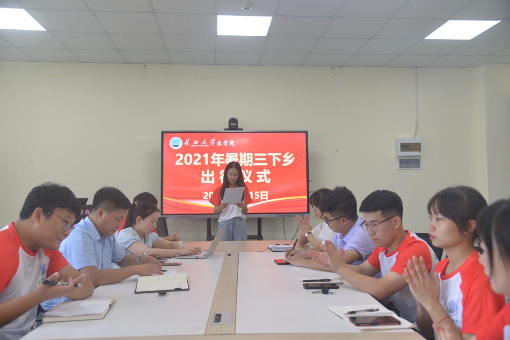 通讯社讯(学生记者 罗旖柔)7月15日,世界杯官网乡村振兴实践队全体成员在农科大楼3071会议室召开2021年暑期“三下乡”出征仪式暨青年红色筑梦之旅出征仪式,党委副书记谭亮魁、分团委书记侯聪、辅导员付雪娇、林香亮参加此次出征仪式。