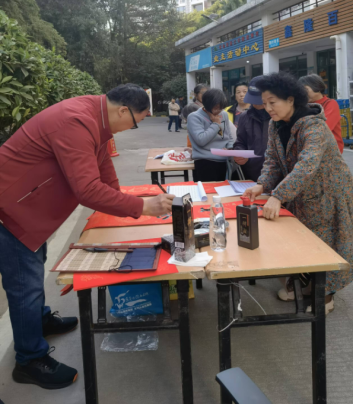活动现场,翰墨飘香,气氛热烈而温馨。kaiyun登录中国入口登录退休党支部的杨万江老师不畏严寒,现场挥毫,把美好的新春祝福凝于笔端,把一副副散发着墨香的春联和福字送到老师们的手上。