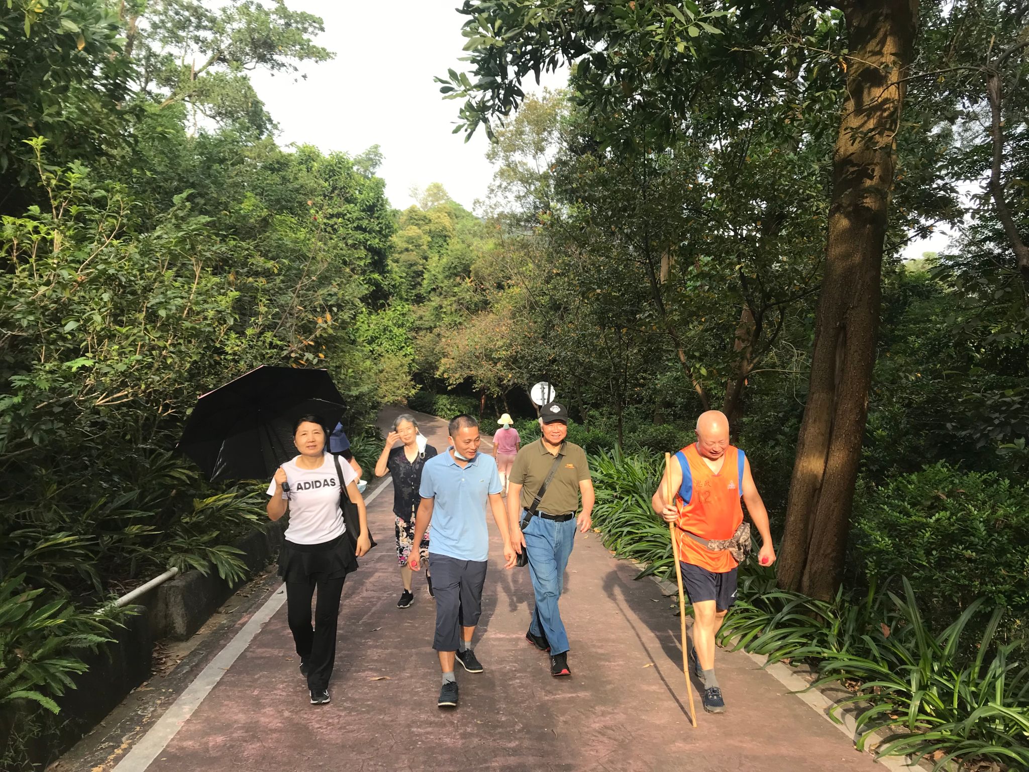 9月的大岭山森林公园大溪水库绿道,秋高气爽,老同志们一边欣赏秋日美景,一路谈笑风生,尽享秋游乐趣,共同庆祝中华民族的传统佳节。