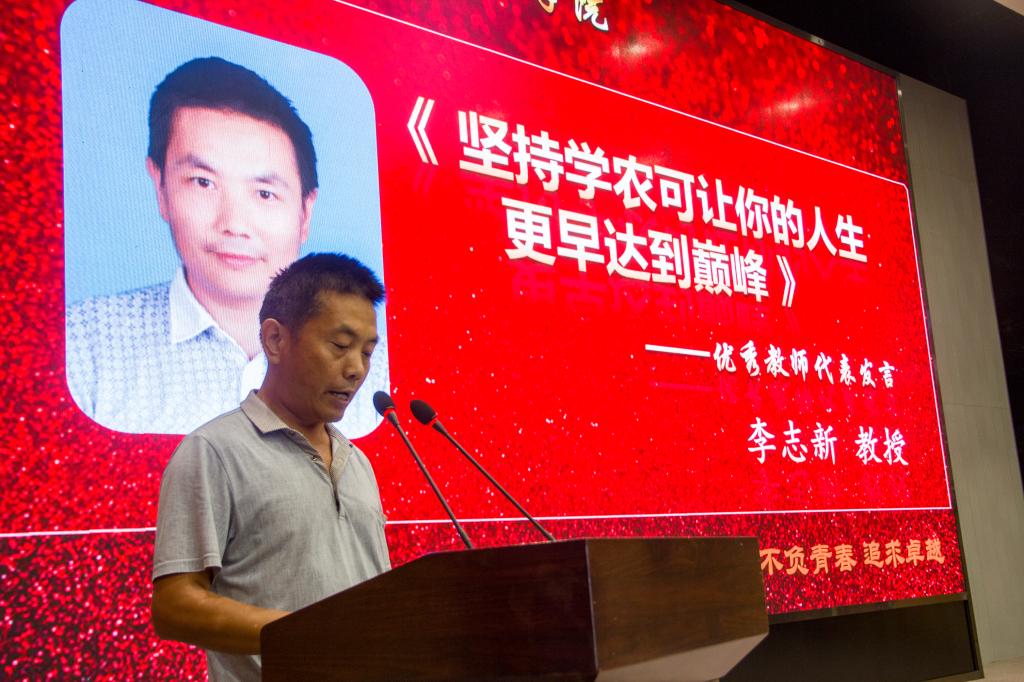 优秀教师代表、两系杂交稻新品种“春两优长 70” 的主持选育人李志新教授结合自己的亲身经历介绍了学农的前景以及世界杯官网的师资力量、学科建设、科研成果等内容,鼓励同学们要坚定理想,专心学业。“只有比别人更付出、更勤奋,通过自身勤奋刻苦才能成为优秀的科学家”,李教授郑重地说道。
