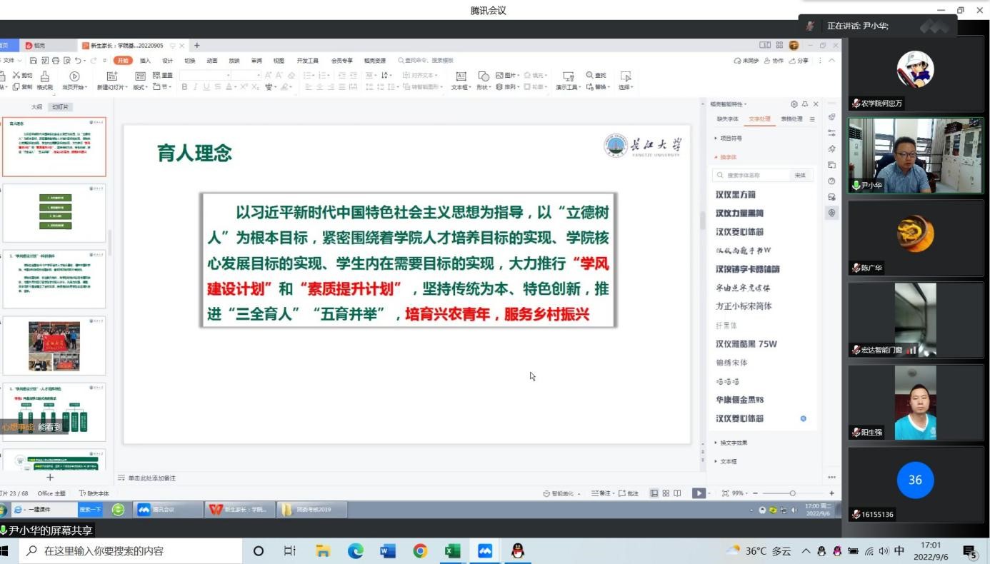 (通讯员 夏应翔)为促进家长和2022级新生更加深入了解大学学习和生活,明确学生在校的发展规划,加强家校联动,9月6日下午,我院在线上召开了2022级新生线上家长会,院长李俊凯、党委副书记尹小华、新生班主任、新生辅导员等参加了会议。
