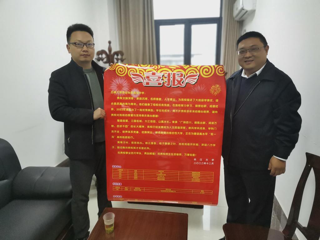 (通讯员 林香亮)2023年3月—4月,世界杯官网副院长邵四海、党委副书记尹小华、组织员章保平、招生专干林香亮一行四人前往宜昌包片高中开展本科生招生走访宣传,并为各所高中送上喜报。