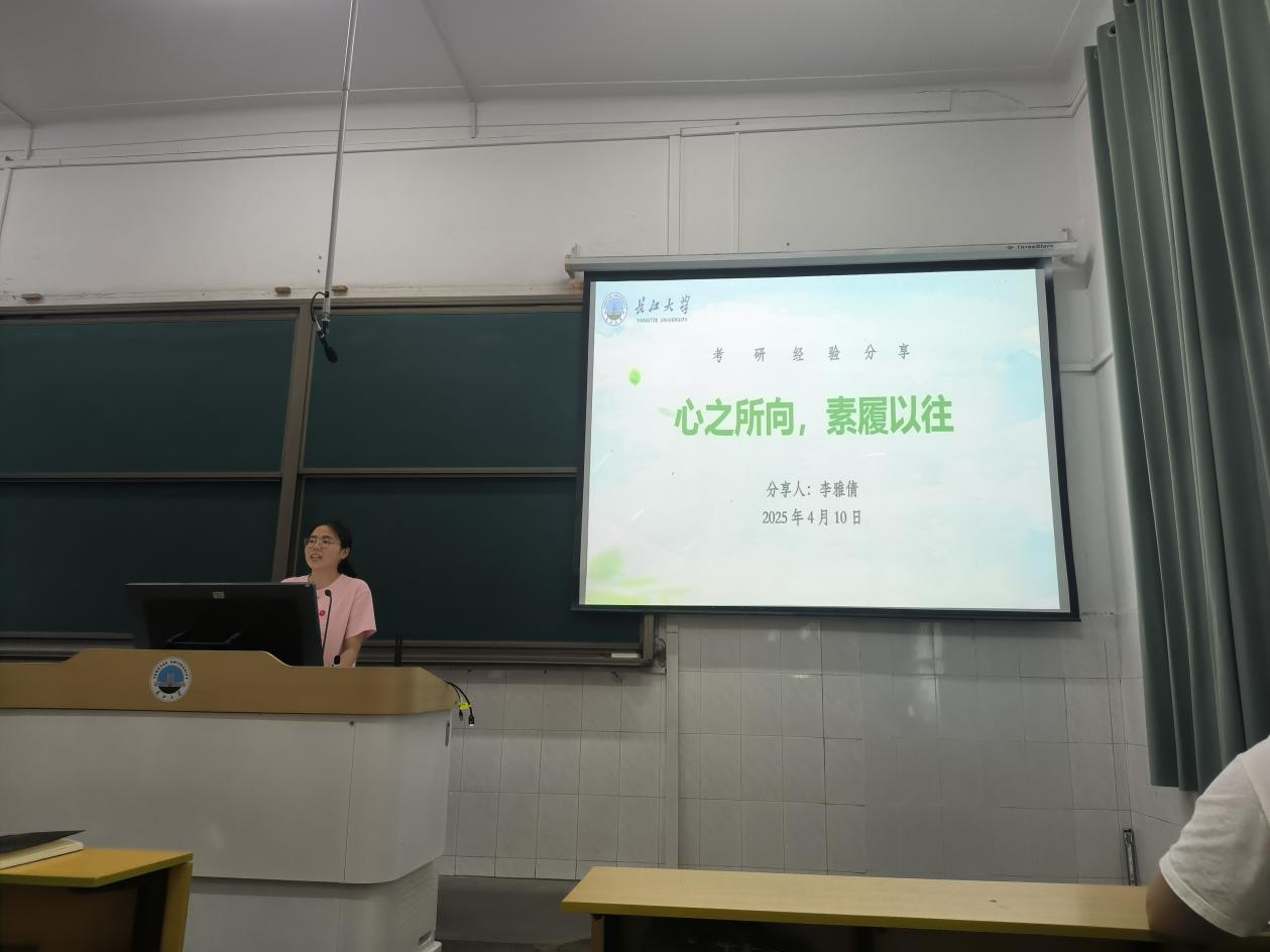 随后,21级考研代表沈树林、胡雪晴、李雅倩分别从自身的复习备考经历、英语学习技巧、政治备考策略和专业课复习重点等方面展开了详细的经验分享。最后,他们祝福学弟学妹们“心之所向,素履以往”。