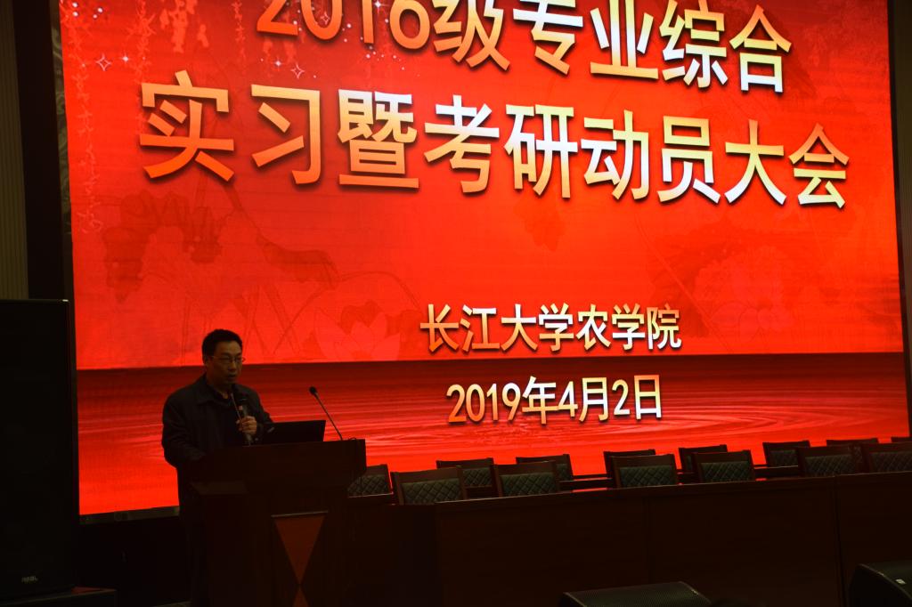 新闻网讯(通讯员 万钰 杨彪鼎)“亲爱的同学们,所谓‘专业综合实习’,基础在专业、关键在综合、核心在实习、保障在安全,志向在考研。”4月2日下午,西校区农科大楼1058会议室传来声声叮咛,世界杯官网2016级专业综合实习暨考研动员大会举行,院长李俊凯教授正在为同学们做相关的部署和动员工作。