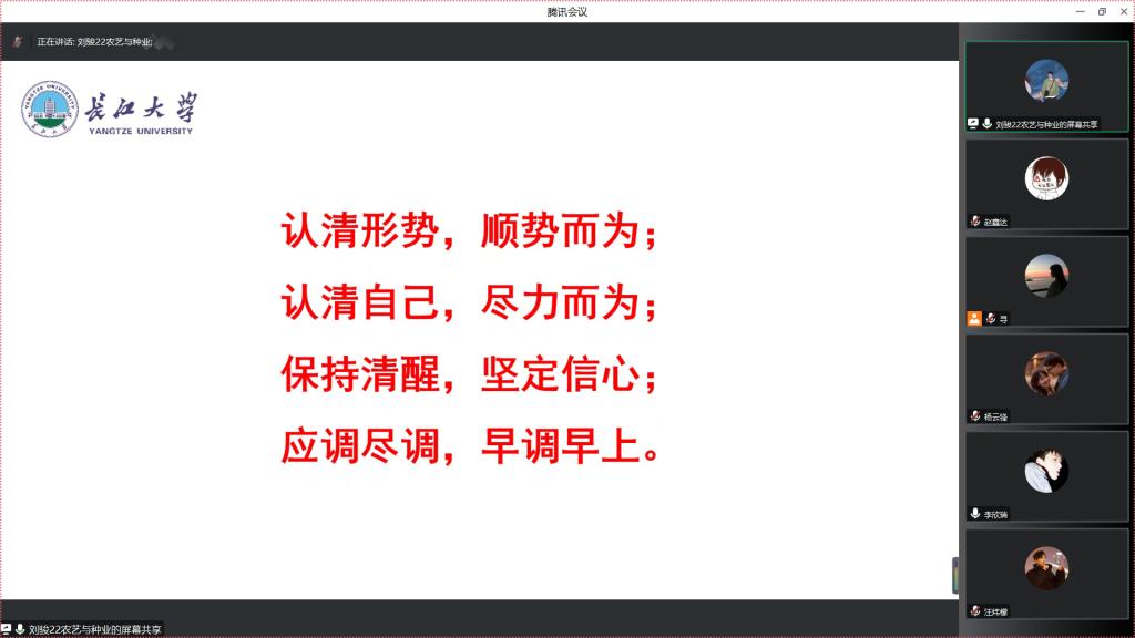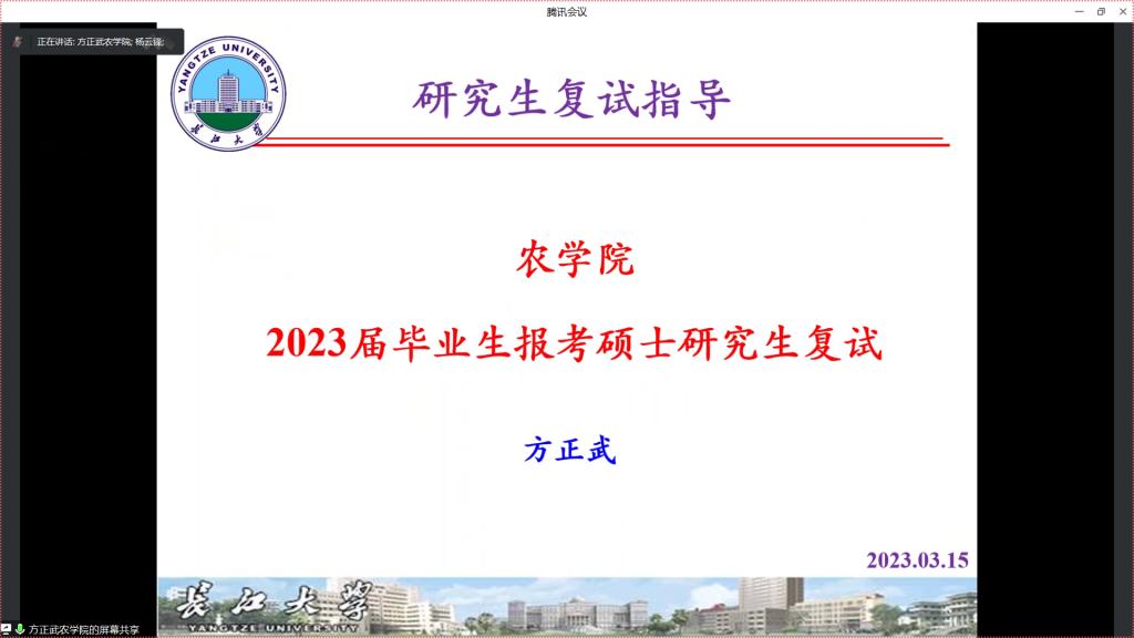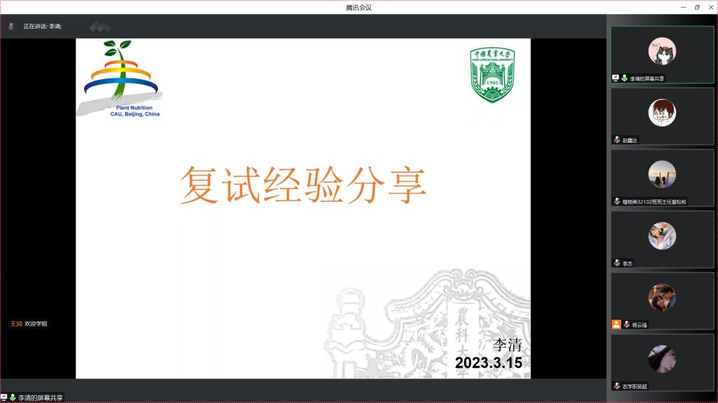 随后,一志愿录取中国农业大学的22级毕业生李清、我院22级研究生赵伟以及调剂到新疆农业大学的22级毕业生汪炜檬,分别以自己的真切经历从复试的准备工作、复试资料、复试中可能出现的问题及调剂需做的准备向同学们进行深刻详实的讲解,帮助同学们对复试及调剂有了进一步的了解。