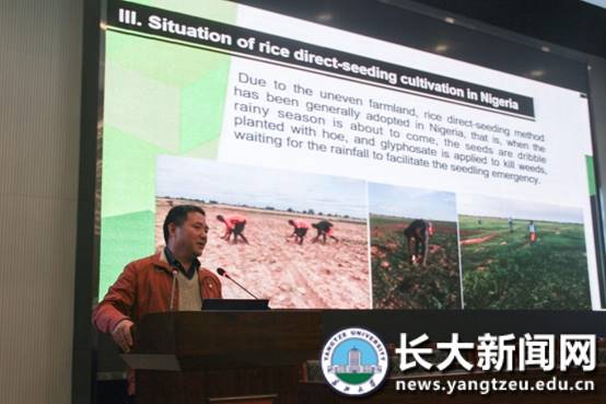 由于在尼日利亚时间长(17年),比较关心他们的水稻产业情况,尼日利亚现在有水稻种植面积350万公顷,其直播的雨养水稻种植面积占85%,但是由于他们是人工锄头点播,株行距间隔大,导致苗少,草多,最后这部分产量极低不足1吨/公顷,即使他们灌区移栽水稻产量可以达到6吨左右,其水稻平均产量仅1.98吨/公顷(尼农业部2019年数据),这激发我通过技术创新来改变这一现状,通过6年多的摸索,基本上完善了我的水稻种植新模式。去年大使来时正好赶上了我的撒播新技术水稻成熟,测产产量达到7吨,比移栽的水稻都好。2019年我们农场全部是用撒播靶地覆盖的新技术播种的水稻,说简单一点就是像种小麦一样种植水稻。当时水稻水稻长势喜人,比往年任何一年都好。苗够,草少,蓄上了水,且省工降低了成本。周围的种粮大户纷纷仿效,学我的技术播种的田间一片水稻,喜获丰收,产量达到4吨/公顷以上,而还是用当地技术播种的,田间杂草一片,产量仅1吨左右。