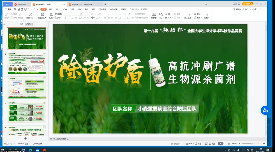 据悉,小麦赤霉病、条锈病等病害2025年预计流行风险面积高达6.06亿亩,较2024年增加8.2%,相关研发已然刻不容缓。我院团队聚焦新型绿色防控药剂,充分彰显了青年学子以科技守护粮食安全与生态健康的责任担当。期待他们在“挑战杯”舞台上绽放异彩,为农业可持续发展注入青春智慧!