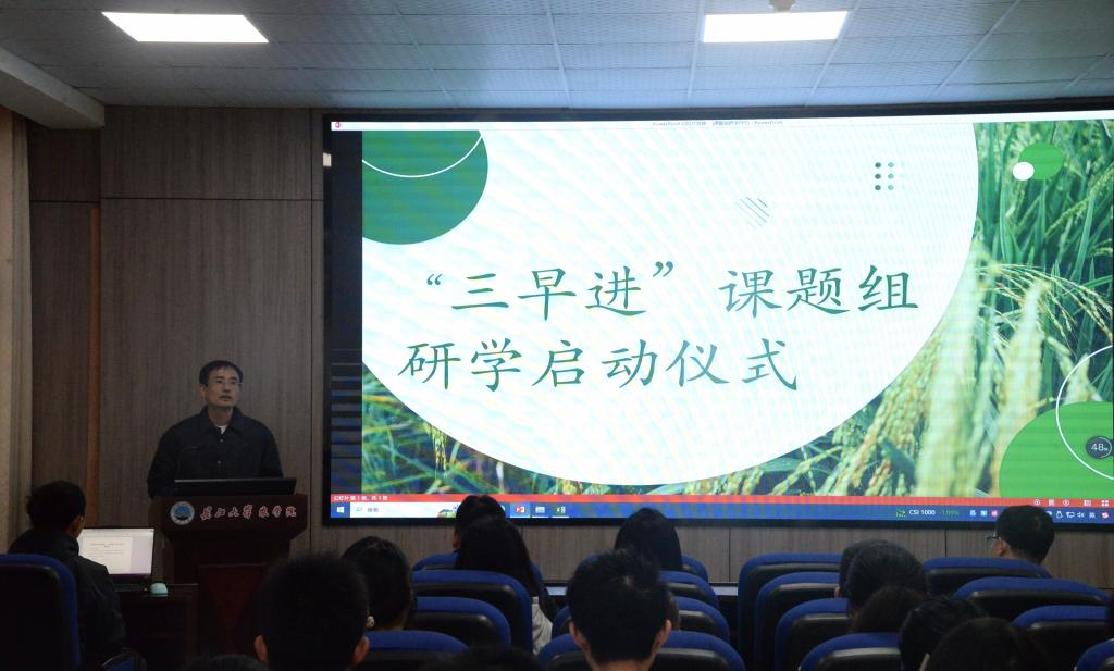 会议伊始,李洪洲对“三早进”课题组研学方案进行详细介绍并做出具体安排。随后,邓建新老师进行发言,他鼓励本科生积极参与到“三早进”中,早进课题组、早进实验室、早进试验田,加深对实验室、课题组的认识,从而调动全体同学的积极性与参与度,做更好的“学农人”。接着,党委副书记尹小华强调将行动与想法结合起来,让同学们通过“三早进”的平台,更好地践行知行合一的理念,勤学笃志。