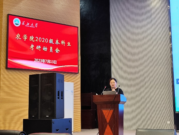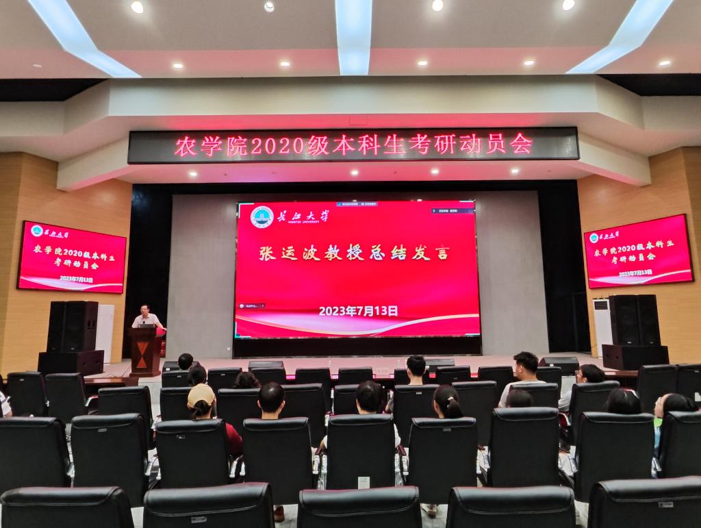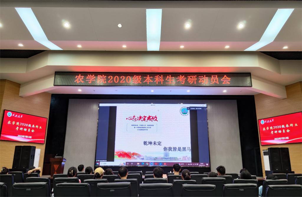 (通讯员 向风云)为进一步促进我院学风建设,营造浓厚的学习氛围,充分调动学生的考研积极性,提高考研上线率。7月13日晚,我院在农科大楼1058报告厅和腾讯会议召开了2020级本科生考研动员大会。副院长张运波老师,学工办主任杨云锋老师,辅导员唐玉婷老师,19级学生代表,20级全体学生参加此次会议。会议由辅导员唐玉婷老师主持。