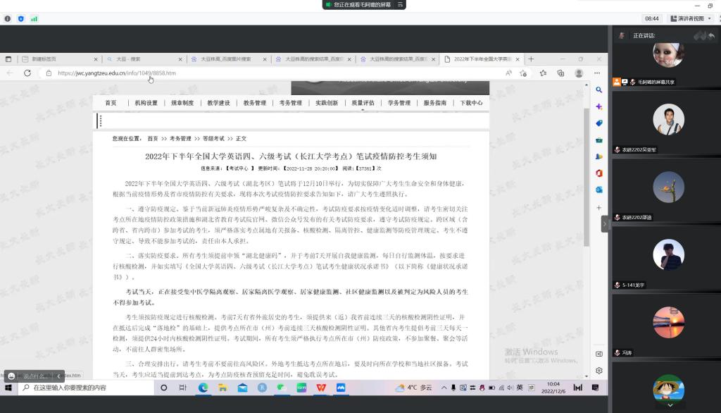 (通讯员 张意巧 王鑫悦)根据学校要求,为做好研究生英语四、六级考试和期末考试相关工作,12月5日,世界杯官网召开研究生考风考纪教育及疫情防控主题班会。