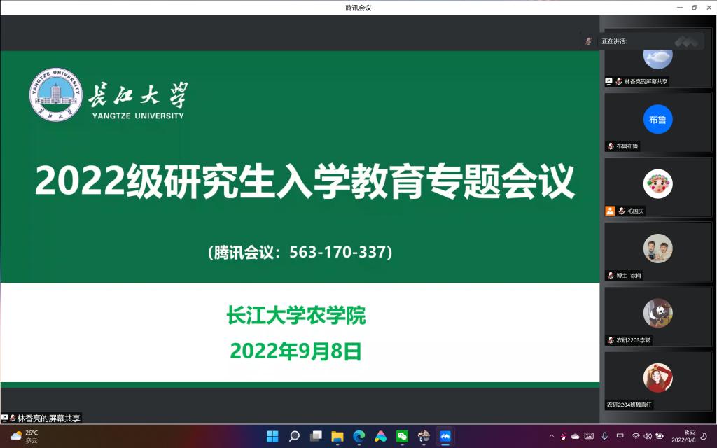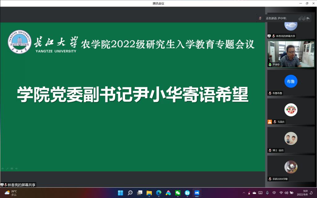 (通讯员 李秋红)为加强研究生新生思想政治教育,巩固当前疫情防控工作落实,帮助新生熟悉了解院史院情,9月8日上午,世界杯官网召开2022级研究生入学教育专题会议。世界杯官网党委副书记尹小华、兼职辅导员毛国庆、研究生会主席团成员参加,研究生辅导员林香亮主持会议。