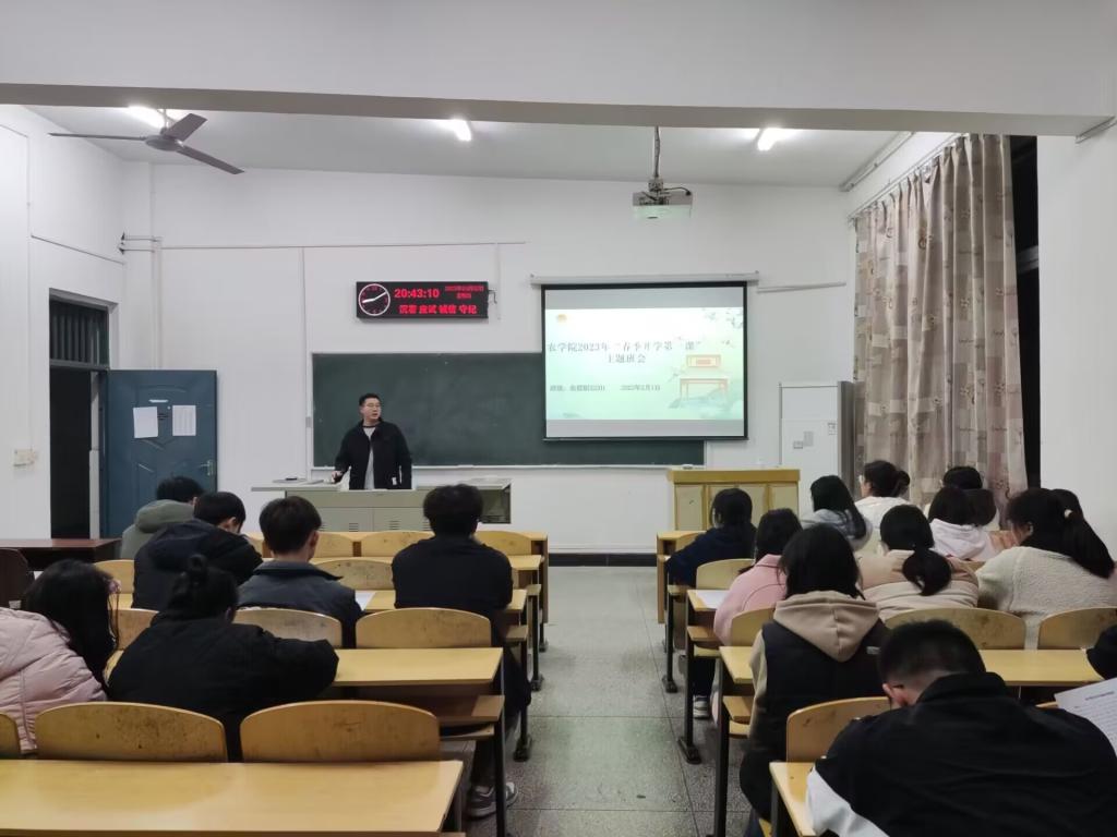 (见习记者 赵鑫达)为贯彻落实党委学生工作部2023年春季学期“开学第一课”系列教育活动的要求,提高学生安全意识,做好学业规划,3月1日至3月5日,各班级以“安全教育”、“未来规划”为主题,围绕“春季开学传染病预防”“学生防诈骗宣传教育”“守望生命安全教育”“意识形态安全教育”“学生学习及就业规划”“学生学习生活诉求”“正确认识疫情”7大议题开展了2023年春季学期“开学第一课”主题班会。