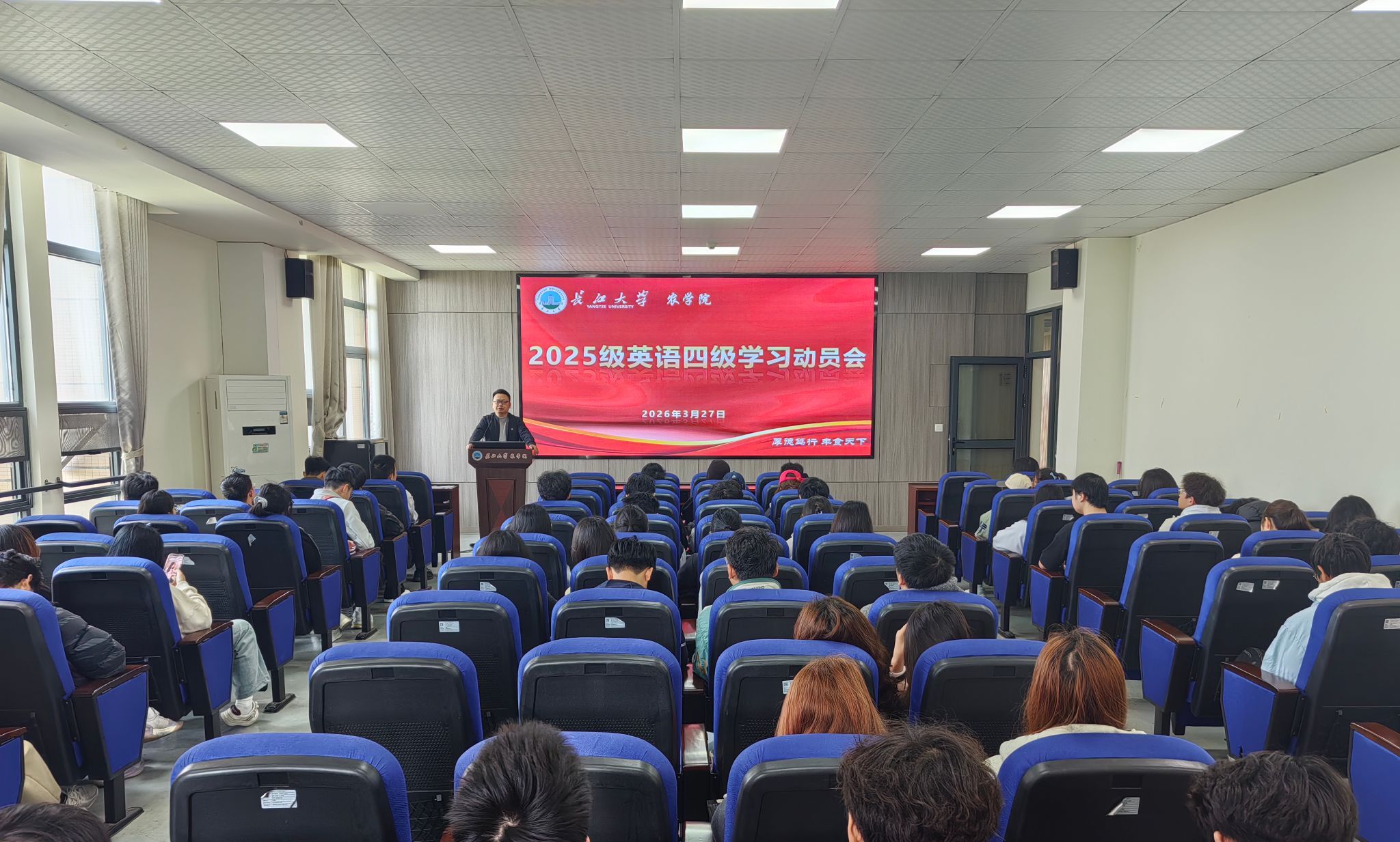 随后,尹小华作动员讲话,他立足学院历年英语四级通过情况,结合农学专业考研深造、高质量就业的现实需求,强调英语四级证书是学生学业达标、未来发展的重要基石。他要求全体同学提高思想站位,将四级备考融入日常学习,端正态度、明确目标,以持之以恒的韧劲投入复习。同时,他鼓励同学们克服畏难心理,主动查漏补缺、积累沉淀,学院将全力做好保障服务,助力大家一次性顺利通过考试。