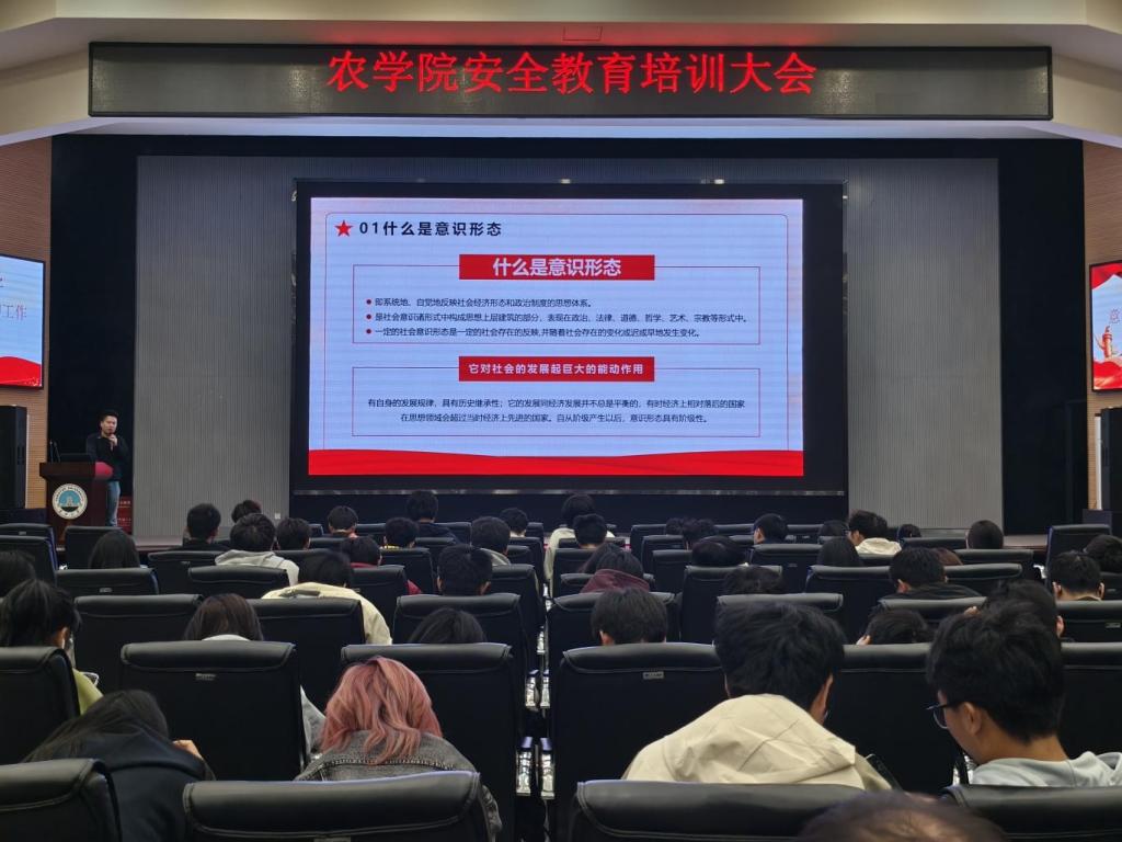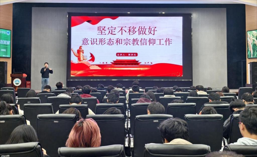 (通讯员 吴泓萱 张源康/文 胡雪晴 向建华/摄)为切实强化学子意识形态认知,提升安全防范综合能力,引导青年学子树立正确宗教观与国家安全观,11 月 11 日,世界杯官网在农科大楼 1058 报告厅面向 2025 级全体新生举办意识形态暨安全教育专题讲座。本次讲座由学工办主任黄承石主讲,为新生们带来了一堂兼具理论深度与实践指导意义的思想安全必修课。