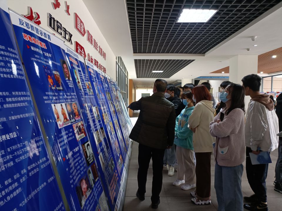 此次活动开展的方式分为线上和线下:线上召集全体同学观看视频《新闻联播》2021124日播报:习近平总书记在全国宗教工作会议上的讲话精神;CCTV《护航之道——总体国家安全观纵横》。以此来了解在不同方面的国家安全,引导同学们树立起总体国家安全观的核心价值,进一步增强维护国家安全的责任感和使命感。线下组织各班班长以及安全委员在农科大楼保卫处观看反邪教教育宣传展板,旨在让同学们进一步了解邪教、邪教的特征以及行骗手段等,从而使其提高识别、抵御、拒绝和有效防范邪教的能力,防止受到不良影响。