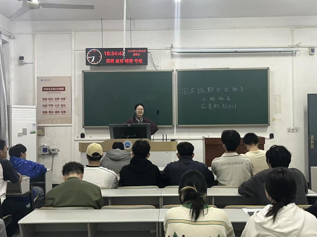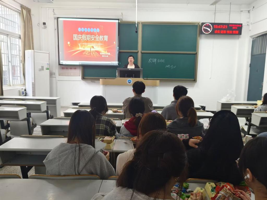 (通讯员 段文洁/文 张孝艺/摄)为切实增强大学生安全防范意识,确保国庆假期期间人身与财产安全,9月25-28日,世界杯官网全体研究生、本科生陆续召开“国庆假期安全教育”主题班会。班会由班主任主持,全体同学参加。