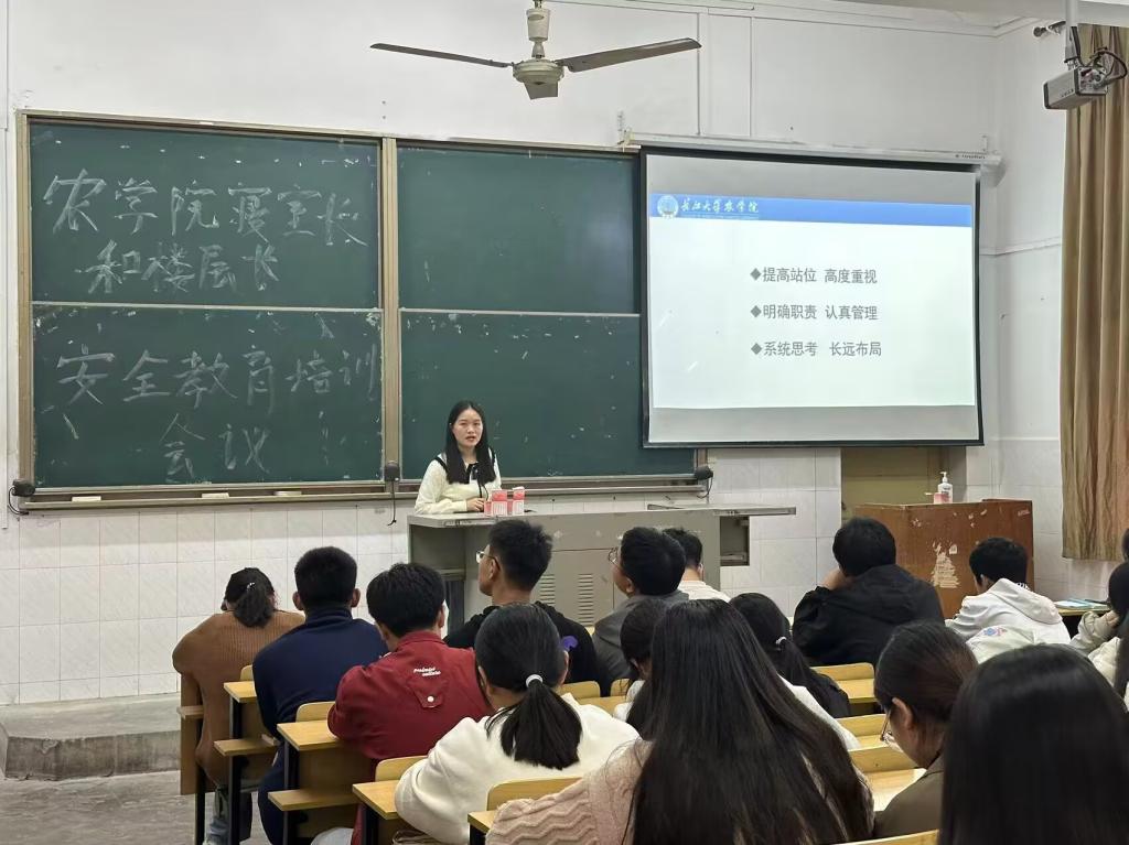 本次寝室长、楼层长和各班副班长安全教育培训会议的召开,增强了大家的安全意识,不仅对学生寝室管理起到了推动的作用,而且有利于营造良好的寝室环境和学习氛围,为我院的发展奠定了良好基础。