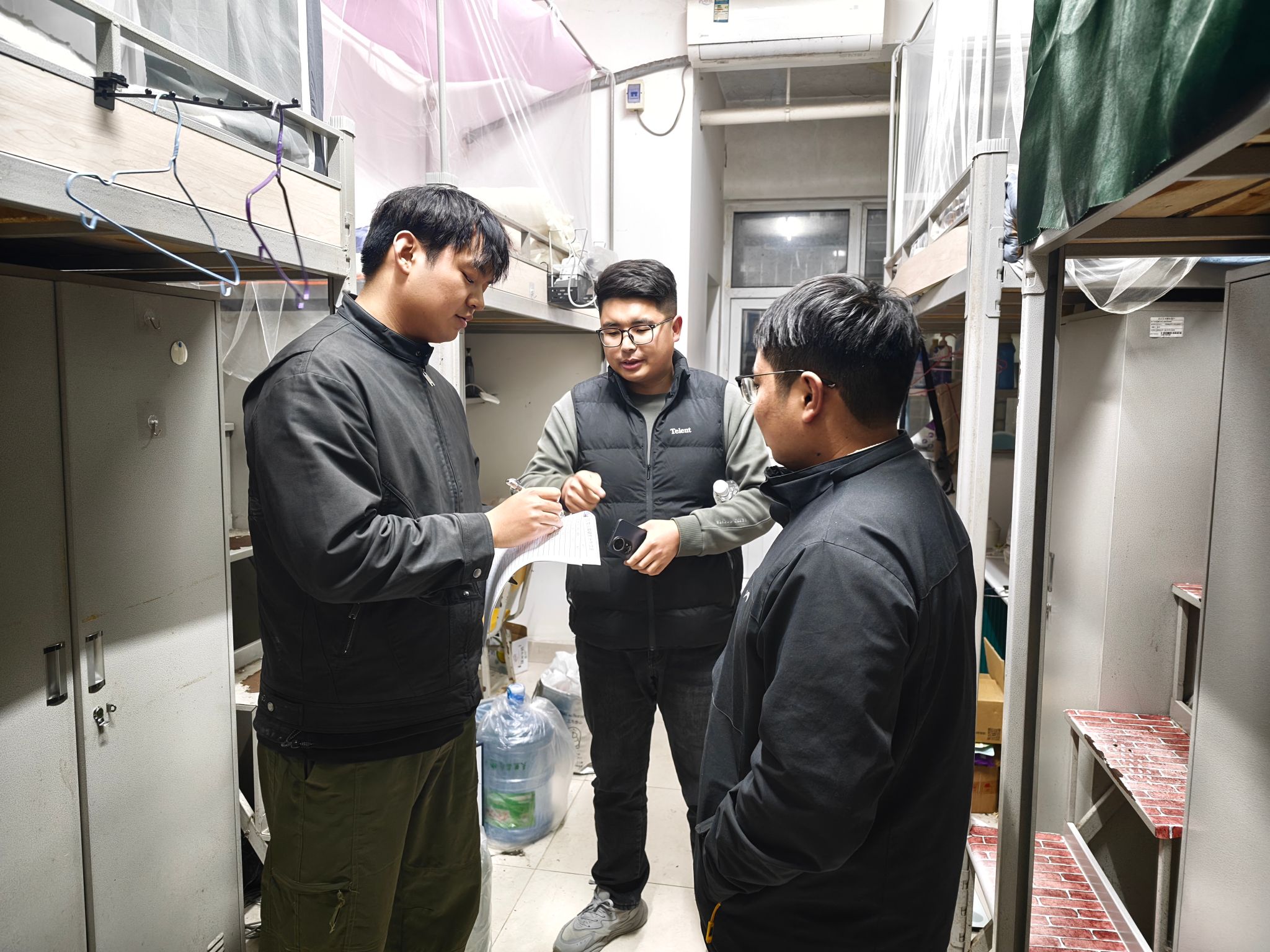 与此同时,吴宵洁带领研究生会干部重点对宿舍用电安全、消防设施、卫生死角等进行细致检查,对发现的问题现场提出整改要求,反复叮嘱同学们严格遵守宿舍管理规定,做到“人走电断、门窗关好”,为同学们营造安全、整洁的宿舍环境。