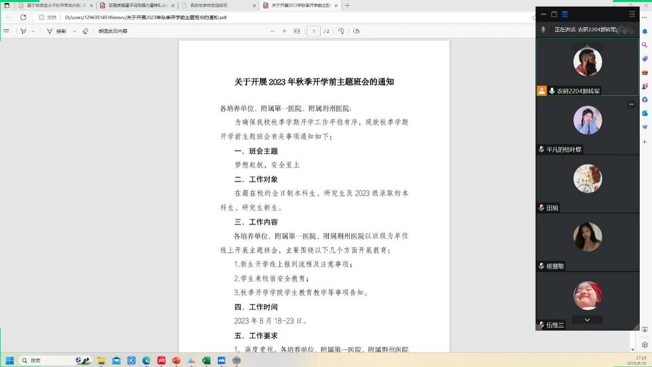 据悉,截止8月21日,全院所有班级均完成此次主题班会,各班班主任都亲自参加了此次班会,学院高度重视新学期班会组织工作,要求各班级针对不同年级、不同学生群体,对标学生发展需求,分层分类指导,精准引导助力学生成长成才,力争主题班会起到良好教育效果,确保新学期开好头、起好步。